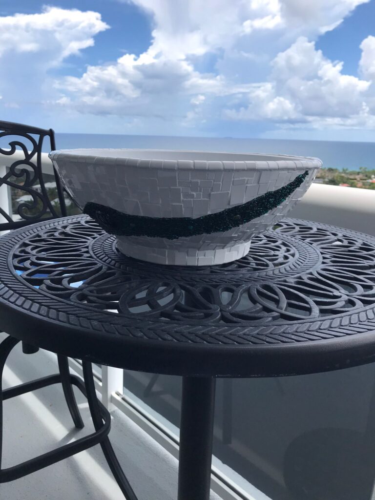Mosaic Pot, white with green rocks